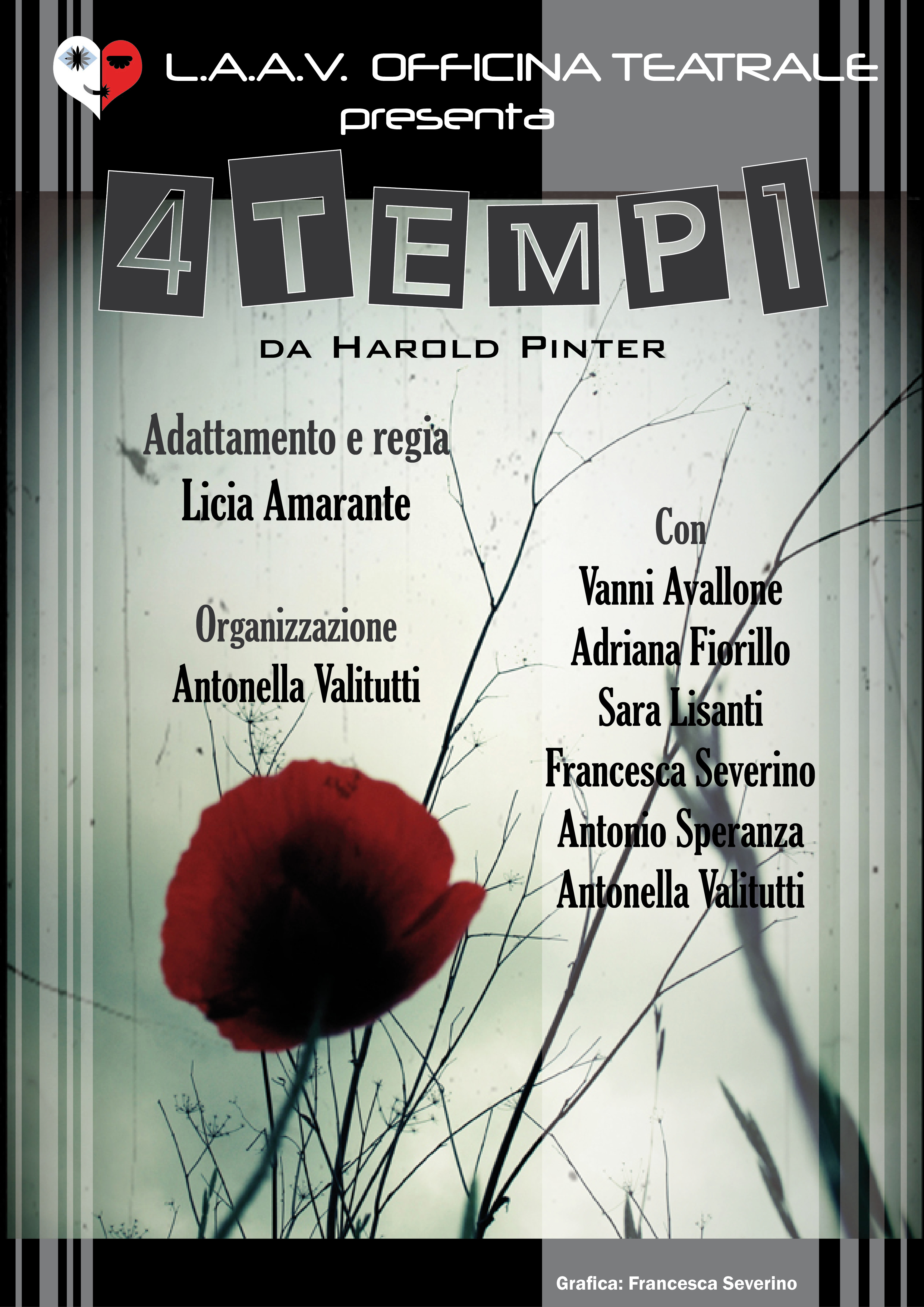 Descrizione L'Officina Teatrale L.A.A.V organizza lo spettacolo teatrale "4 tempi", che si terrà il 21 e 22 maggio, alle ore 20.30, alla Chiesa di Sant'Apollonia. In allegato la locandina dell'evento