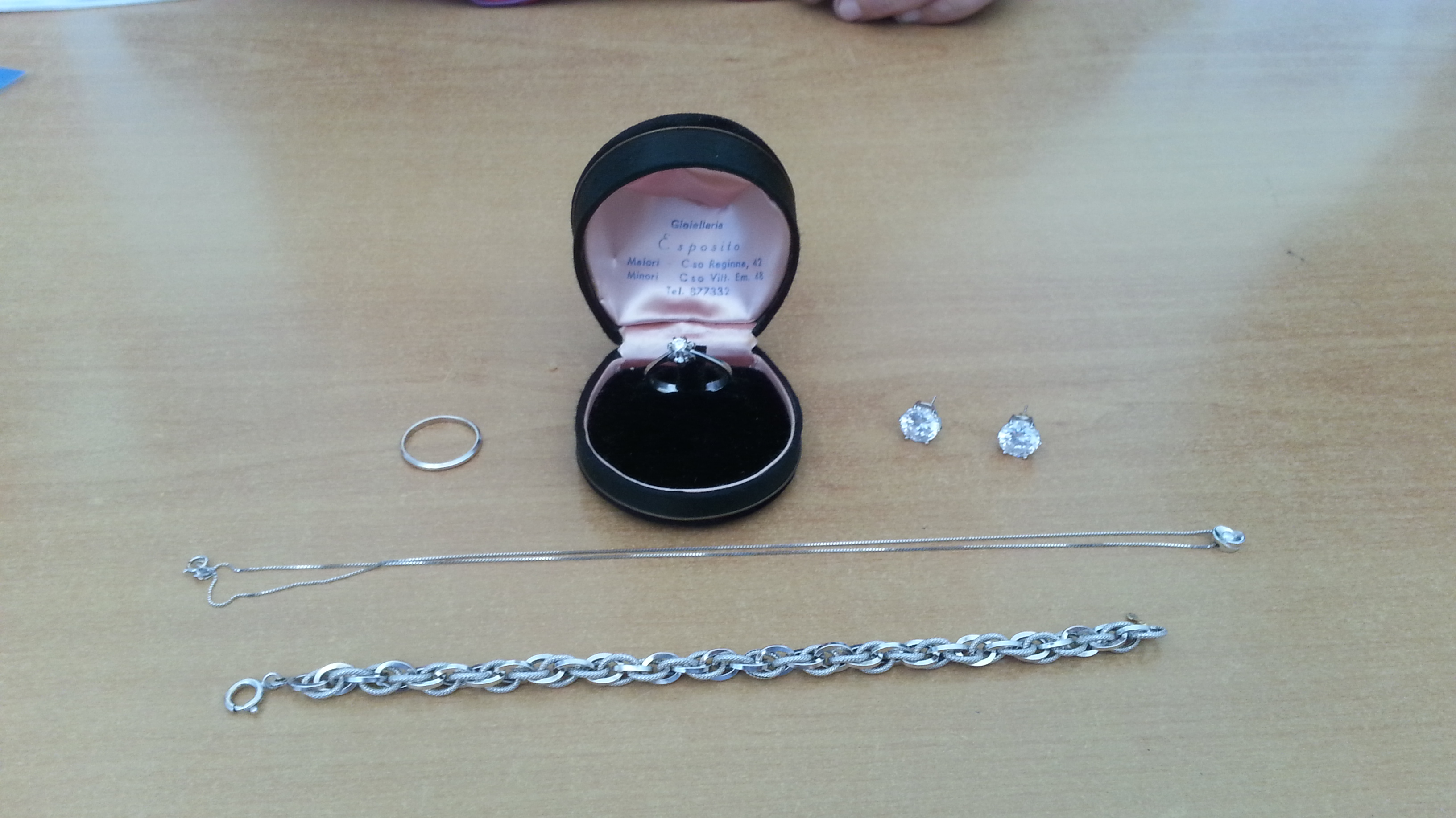 Alcuni agenti del Reparto Motociclisti della Polizia Municipale di Salerno hanno trovato -domenica scorsa- in piazza Vittorio Veneto, a Salerno, uno zaino contenente (oltre all’abbigliamento e altri effetti personali) un astuccio con vari gioielli: un anello in oro bianco con diamante, un fermanello sempre in oro bianco, un girocollo in oro bianco con un punto luce in diamante e un bracciale in oro. Il tutto per un valore stimato di diverse migliaia di euro.