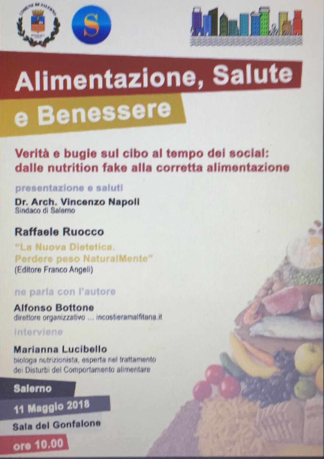 Dopo i saluti del sindaco di Salerno Vincenzo Napoli, interverranno: il dottor Raffaele Ruocco, il direttore organizzativo incostieramalfitana.it, Alfonso Bottone, biologa nutrizionista, esperta nel trattamento dei disturbi del comportamento alimentare, Marianna Lucibello.