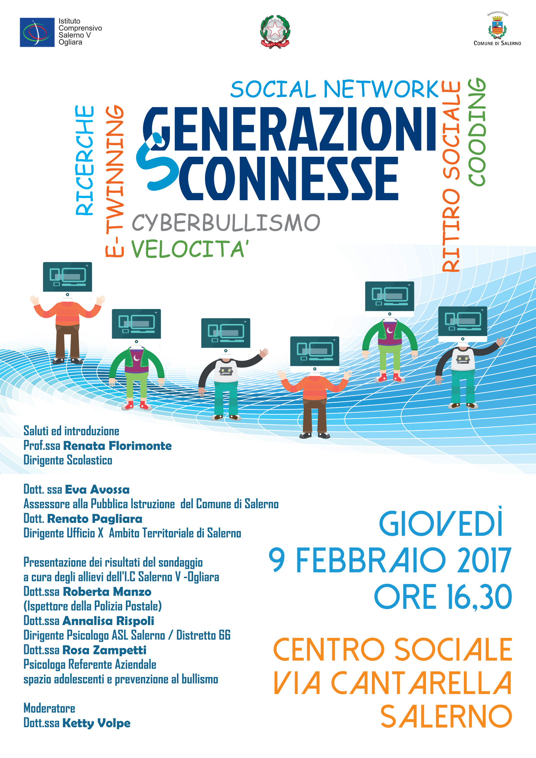 Social network, ritiro sociale, cyberbullismo, cooding, velocità, ricerche, e-twinnig: queste le parole chiave ed i temi che saranno trattati nel corso del convegno.
