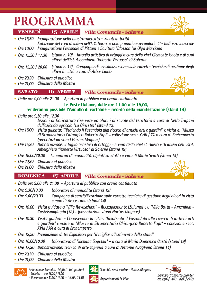 L'evento, ormai una consolidata consuetudine per la nostra città che si iscrive a pieno titolo nella gloriosa tradizione della Scuola Medica Salernitana, si propone di coltivare nel cittadino l'amore per la natura, curare le conoscenze botaniche e approfondirne le tecniche.