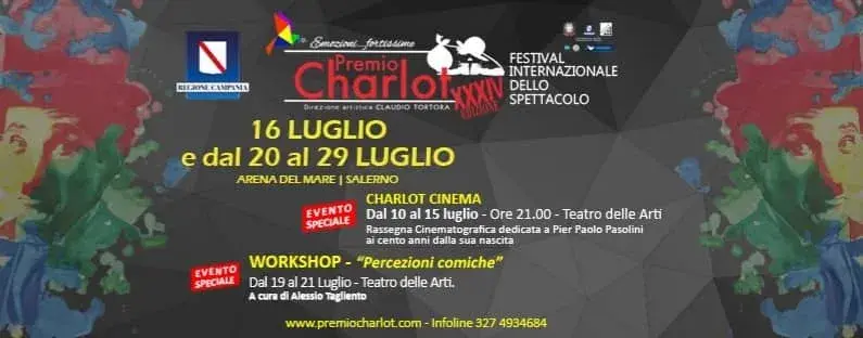 Si terrà, come ogni anno, nel mese di luglio la 34esima edizione del Premio Charlot. Il taglio del nastro si avrà il 10 luglio al Teatro delle Arti dove, fino al 15 luglio saranno proiettati, alle ore 21, tre film di Pier Paolo Pasolini, a 100 anni dalla sua nascita. Si prosegue poi, il 16 luglio all'Arena del Mare, nell'ambito della XX edizione del Sea Sun, con inizio alle ore 21.30 con il concerto dei "Gemelli di Guidonia". Al Teatro Delle Arti, dal 19 al 21 luglio spazio ai workshop "Percezioni Comiche" a cura di Alessio Taglienti. Mentre il 20 luglio all'Arena del Mare, torna la gara dei giovani comici, ospiti della serata  "I Villa per Bene". Il 21 luglio spazio alla musica con Sandro Deidda che con il suo gruppo proporrà il concerto "Le grandi sigle della televisione".