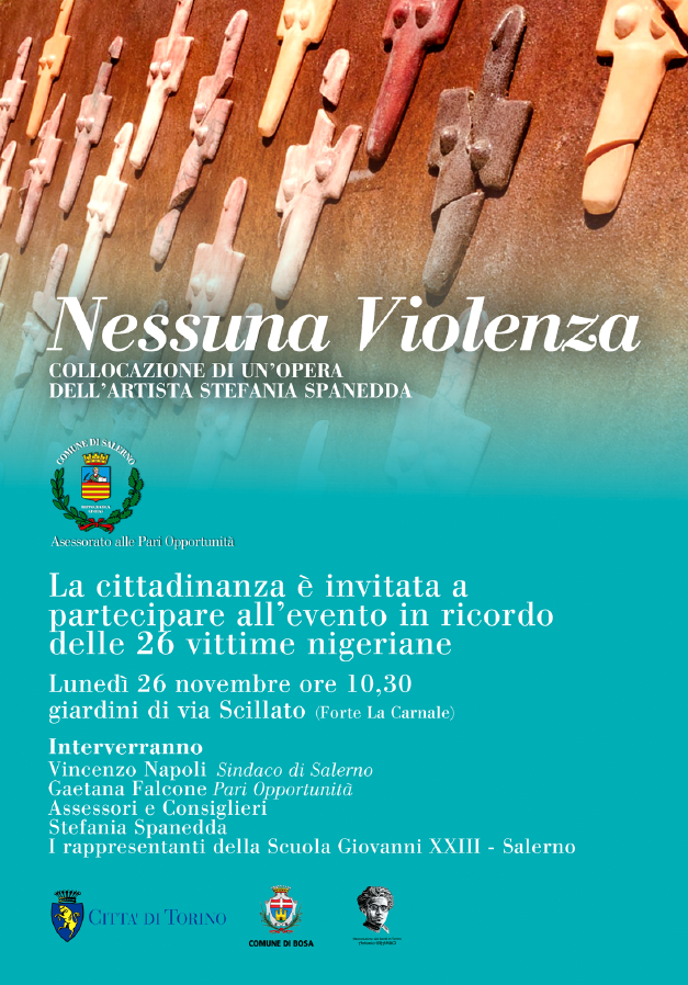 Alla cerimonia inaugurale dal titolo "Nessuna Violenza", insieme all'artista, hanno preso parte il Sindaco di Salerno Vincenzo Napoli, l'Assessore alle Pari Opportunità Gaetana Falcone, assessori e consiglieri comunali, i rappresentanti della Scuola Giovanni XIII di Salerno.
