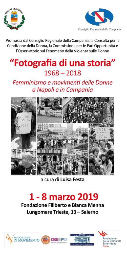 C’è tempo fino a domani, venerdì 8 marzo, per visitare la mostra a cura di Luisa Festa “Fotografia di una storia” 1968-2018 – Femminismo e movimenti delle donne a Napoli e in Campania, che si tiene alla Fondazione “ Filiberto e Bianca Menna”, a Salerno.