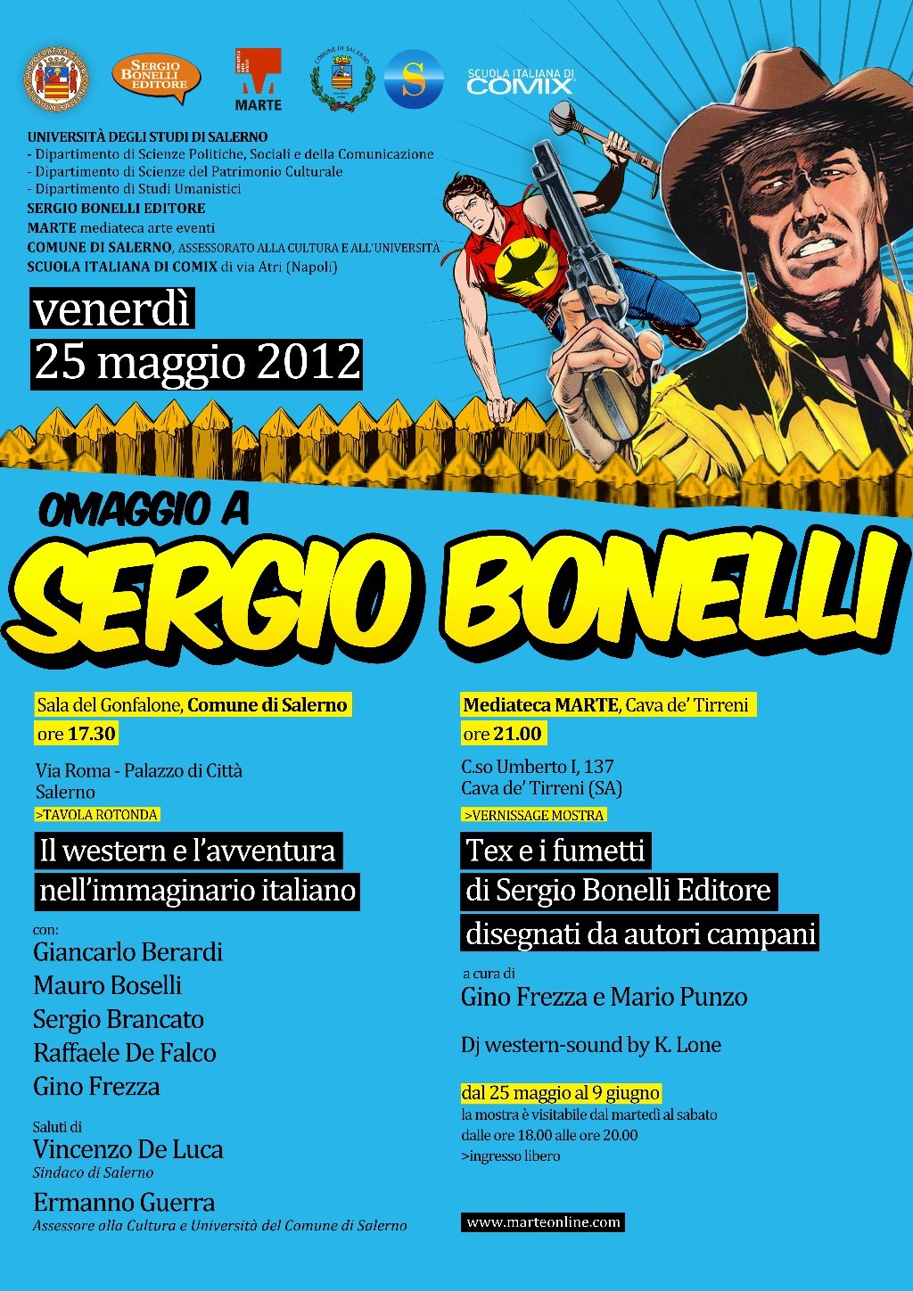 L’incontro tra il MARTE Mediateca, l’Università degli Studi di Salerno (Dipartimento di Scienze Politiche, Sociali e della Comunicazione, Dipartimento di Scienze del Patrimonio Culturale, Dipartimento di Studi Umanistici), la Sergio Bonelli Editore, il Comune di Salerno (Assessorato alla cultura e all’università) e la Scuola italiana di Comix, determina un intenso momento di riflessione sul fumetto e sul genere western, forma di immaginario che ha plasmato la cultura di molte generazioni di italiani. In tale contesto, i fumetti della Sergio Bonelli Editore ricoprono un ruolo fondamentale. La mostra del 25 maggio presenta le tavole di autori campani di Tex e di altre serie di Bonelli.