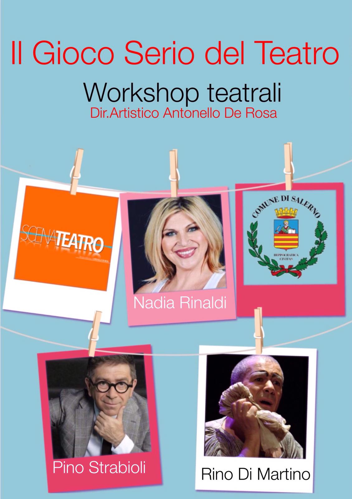 Workshop teatrali con nomi di rilevanza nazionale, il primo a marzo con l’attrice Nadia Rinaldi, volto noto del grande e piccolo schermo, una carriera importante, ha frequentato il laboratorio di Gigi Proietti, lavorando con lo stesso, televisione e cinema, vincitrice del Globo d’oro come miglior attrice protagonista nel 1991, vincitrice del Nastro d’argento come migliore attrice non protagonista nel 1992.