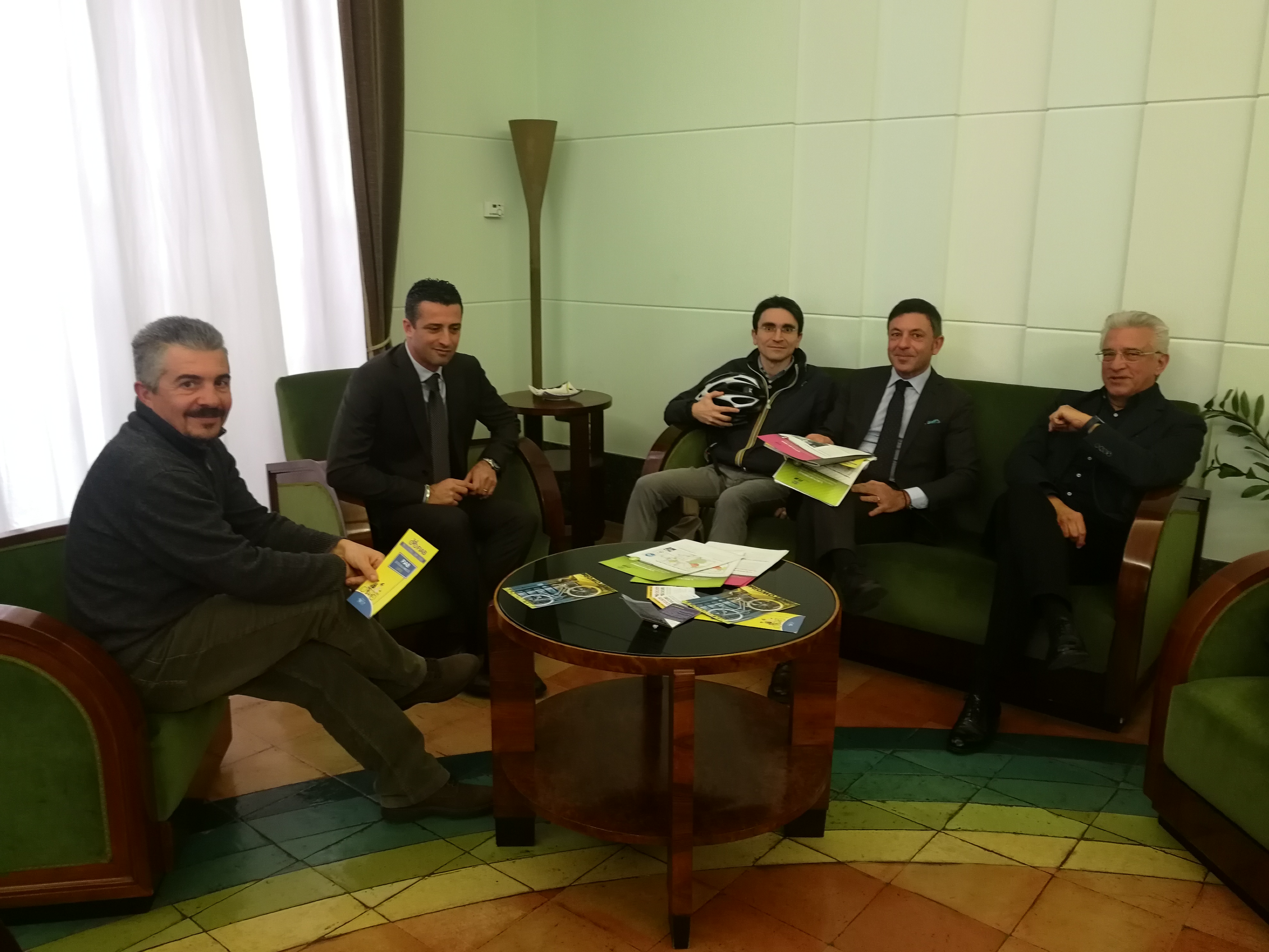 Questa mattina il sindaco di Salerno, Vincenzo Napoli, insieme all’assessore all’Ambiente e allo Sport Angelo Caramanno e al consigliere comunale - vice presidente Commissione Mobilità, Donato Pessolano, hanno incontrato Paolo Longo - presidente associazione Fiab (Federazione Italiana Amici della Bicicletta) e Antonio Tedesco – componente dell’associazione.