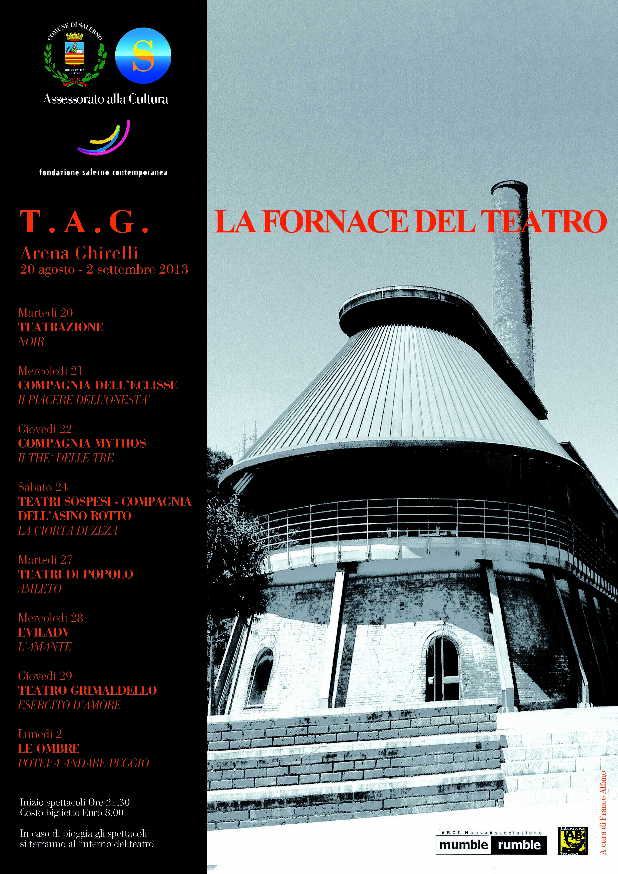 Nel corso di una conferenza stampa tenutasi lunedì 19 agosto, presso la Sala Giunta del Palazzo di Città, è stato presentato il calendario de "La fornace del teatro", rassegna teatrale in programma all'Arena Ghirelli (Parco dell’Irno) dal 20 agosto al 2 settembre.