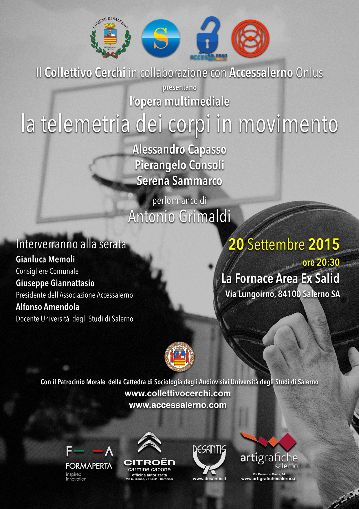 Verrà presentato domenica 20 settembre alle ore 19.30 presso la ex Fornace del Parco dell'Irno il primo lavoro editoriale del Collettivo Cerchi, Osservatorio Permanente sulle Arti e sulle nuove Forme di Ricerca e Comunicazione Creativa. “La telemetria dei corpi in movimento” rappresenta un racconto che ogni fruitore potrà vivere attraverso l’uso dei cinque sensi: un box ‘sensoriale’ che racchiude la storia del Consigliere Comunale di Salerno, Gianluca Memoli, che ha deciso di raccontarsi al Collettivo Cerchi ‘per manifestare la sua speranza, la sua voglia di non abbattersi e di vincere tutte le sfide che la vita gli ha messo davanti’.