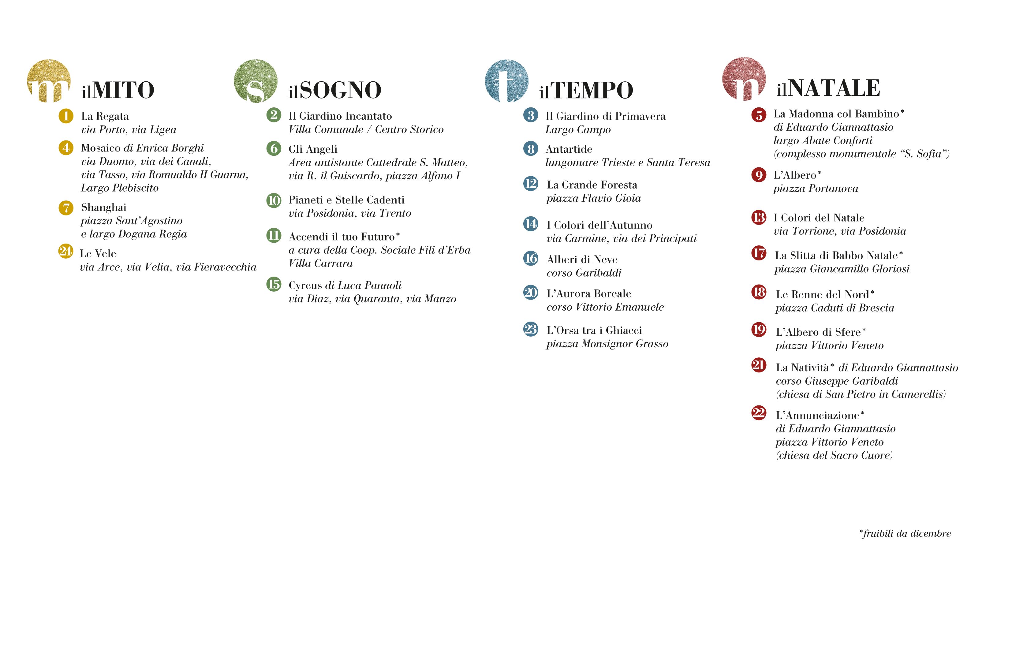 Inaugurata sabato 7 novembre la X edizione di Luci d'Artista. Dopo l'accensione del Giardino Incantato nella Villa Comunale, alla presenza del Sindaco f.f. Vincenzo Napoli, si sono illuminate in contemporanea le altre opere dislocate in tutta la città. Luci d'Artista 2015 proseguirà fino al 24 gennaio 2015.