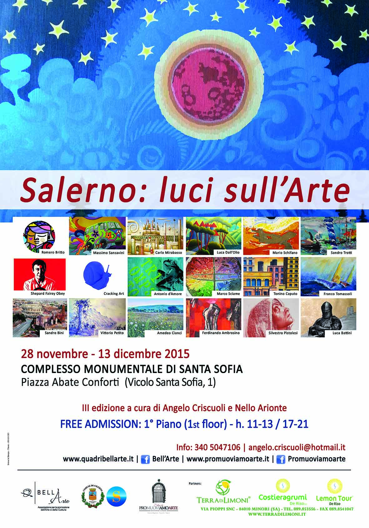 Dopo gli apprezzamenti delle passate edizioni nei Palazzi Genovese e Fruscione, sarà il Complesso monumentale di Santa Sofia in piazza Abate Conforti, ad ospitare dal 28 novembre al 13 dicembre 2015 la 3° edizione di “Salerno: luci sull’Arte” a cura di Angelo Criscuoli e Nello Arionte.