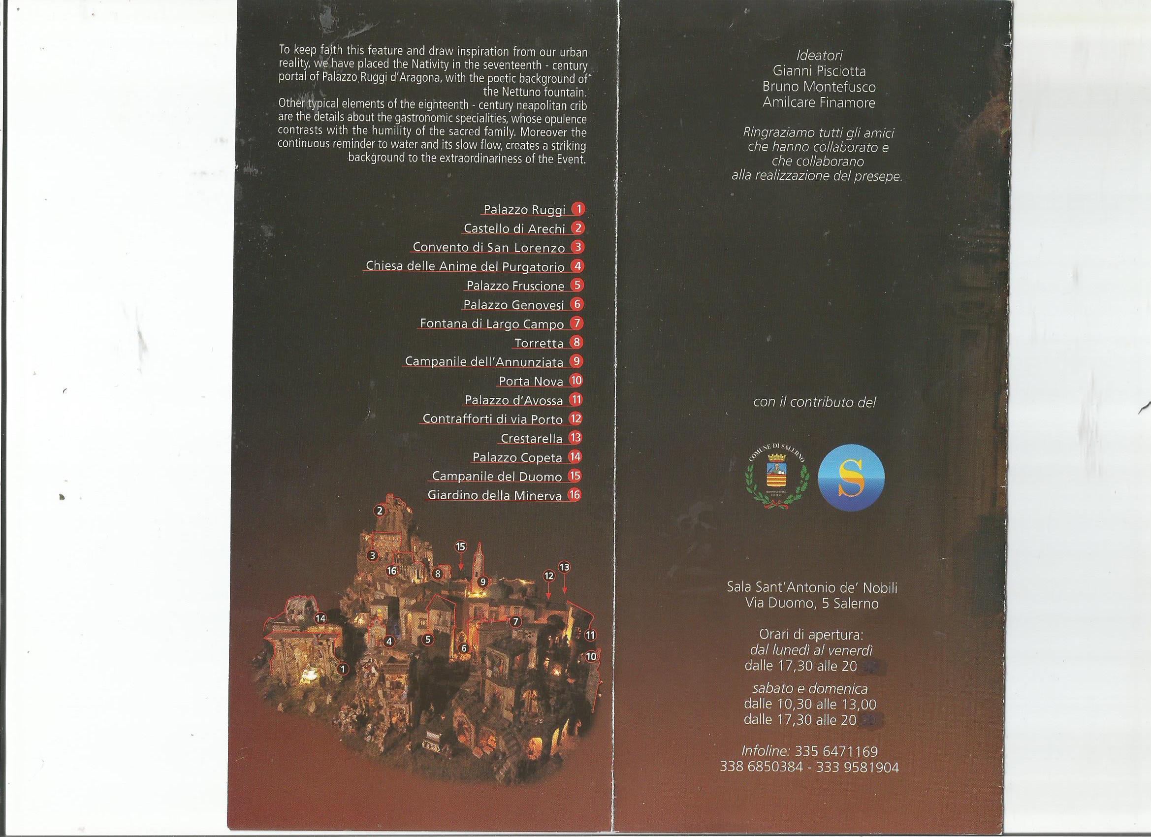 Sarà in esposizione dall'8 dicembre al 13 gennaio, presso la Sala Sant'Antonio de' Nobili di via Duomo, il Presepe di Sant'Agostino. Da oltre 30 anni l'obiettivo degli organizzatori è quello di ricreare l'atmosfera magica del Presepe attraverso la rappresentazione di monumenti e luoghi storici cittadini tra cui: Largo Campo, il campanile dell' Annunziata, Palazzo Ruggi, Porta Nova, Palazzo d'Avossa, via Porto, Crestarella, il Campanile del Duomo, il Giardino di Minerva e tanti altri.