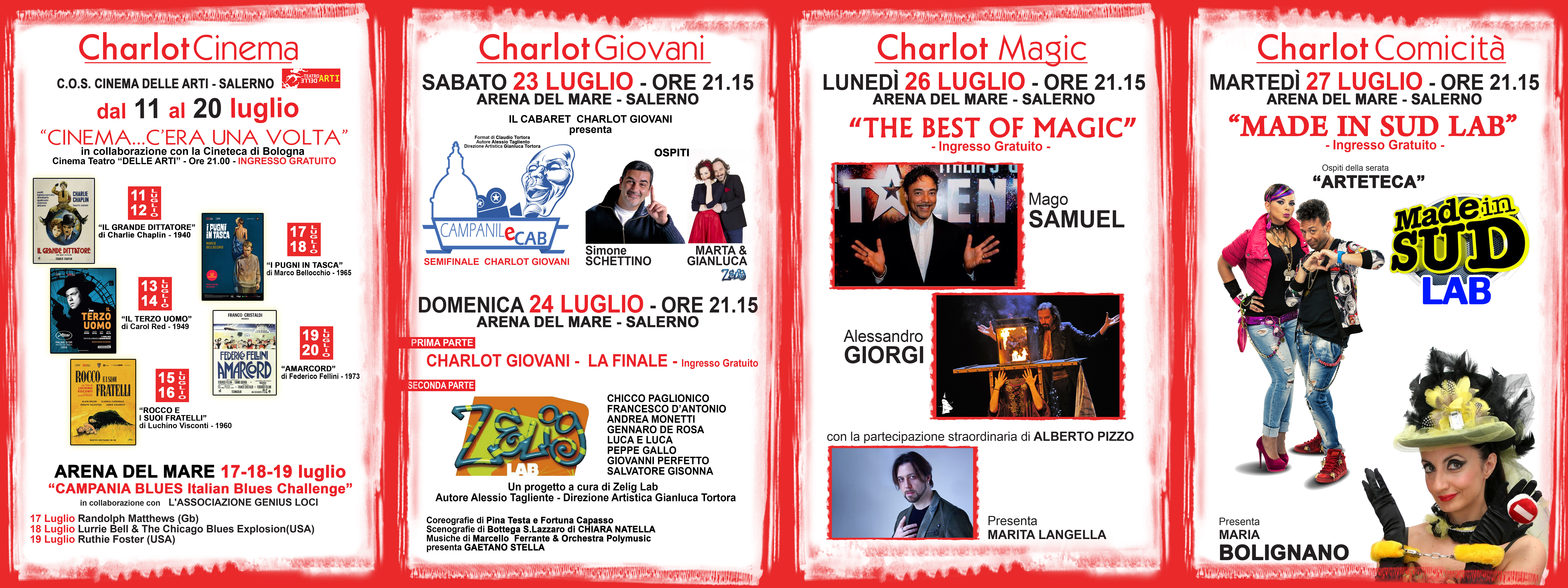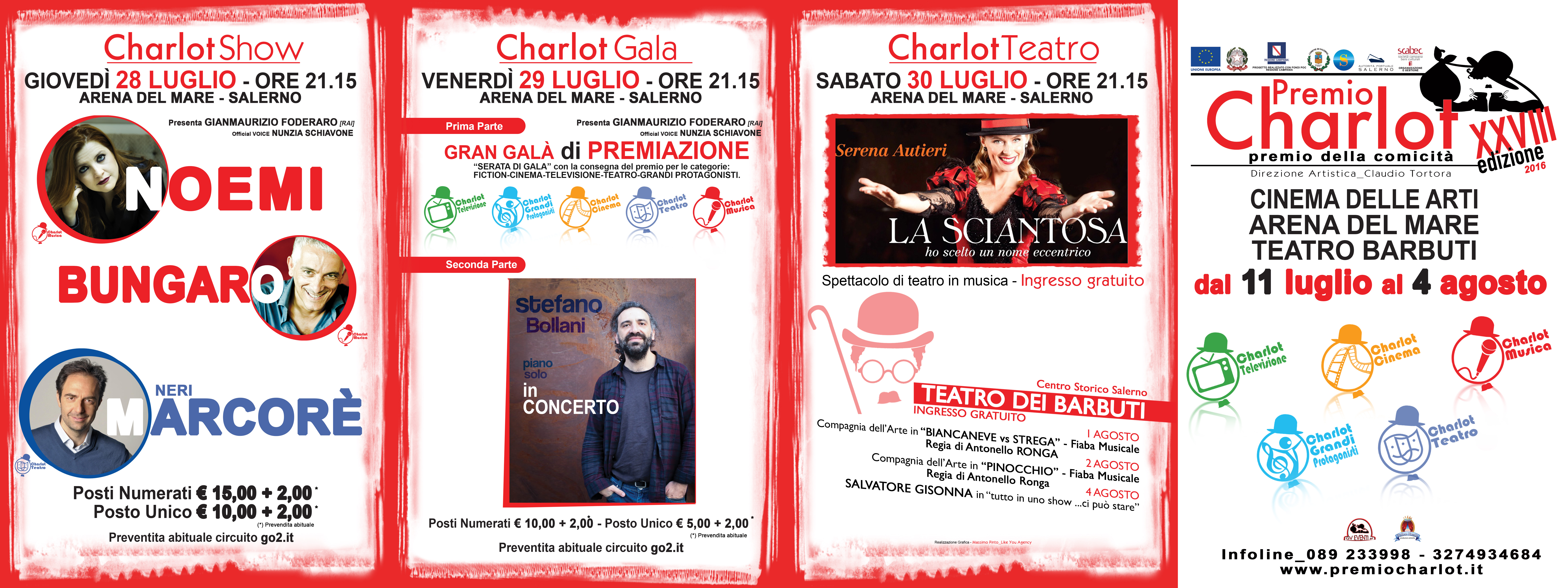 Venerdì 2 luglio è stata presentata la XXVIII edizione del Premio Charlot, che si terrà dall'11 luglio al 4 agosto a Salerno tra il Teatro delle Arti, l'Arena del Mare e il Teatro dei Barbuti.
