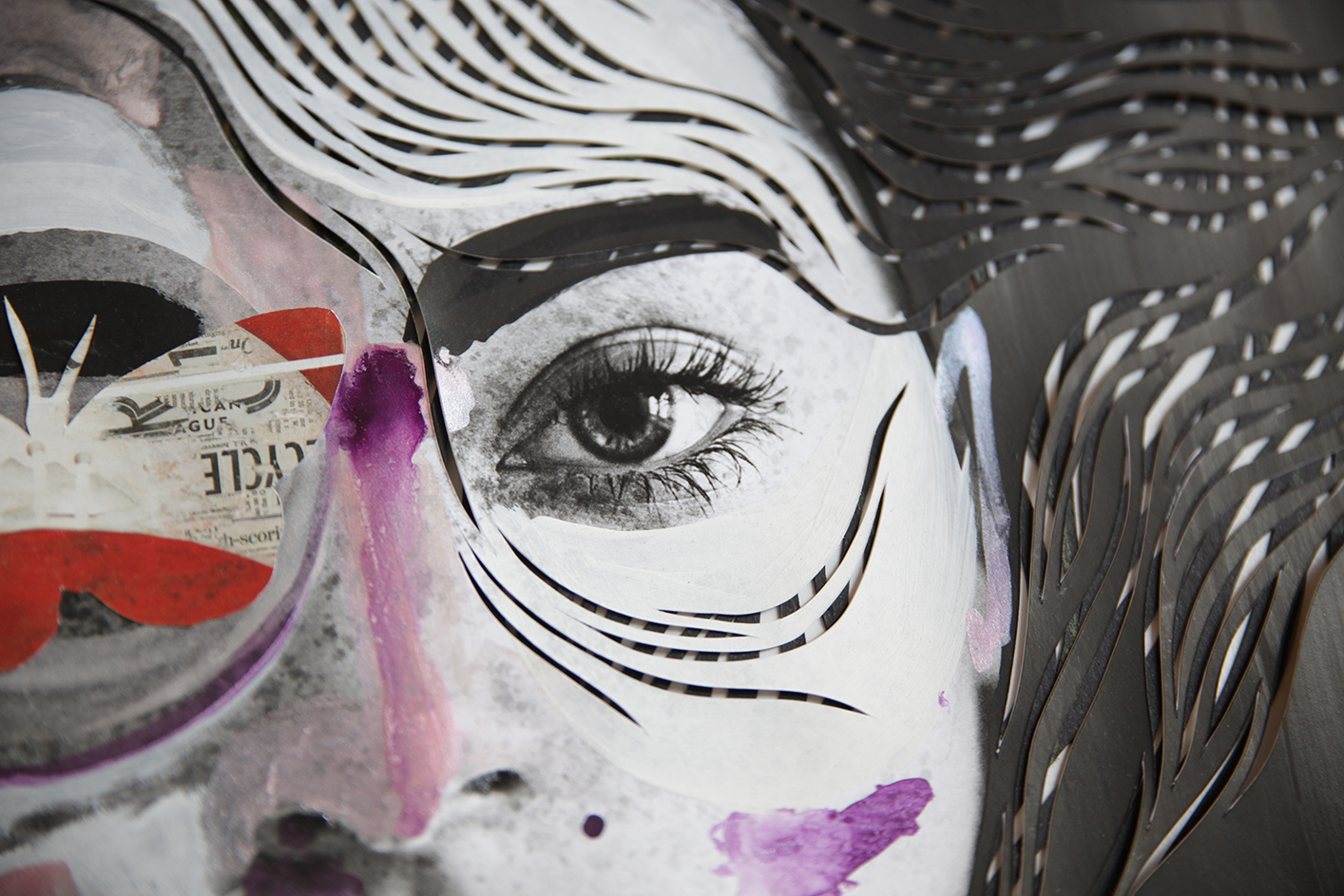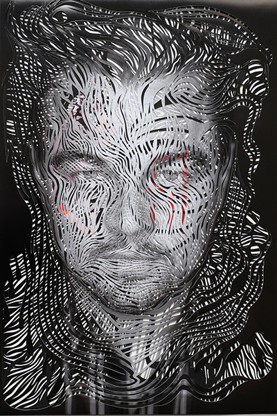 CONCEPT. Hybrid Theory è la prima mostra personale salernitana di Marco Gallotta (Battipaglia, 1973), artista campano che vive e lavora a New York da circa vent’anni. Dopo varie peregrinazioni giovanili tra il Nord Italia e il Nord Europa in cui ha assorbito influenze e combinato esperienze, all’inizio degli anni Duemila Gallotta si stabilisce negli Stati Uniti, prima a Boston e poi definitivamente a New York, dove approfondisce e consolida i suoi studi artistici al Fashion Institute of Technology, aprendosi in particolare al mondo della moda e della pubblicità. Gli strumenti che predilige sono quelli propri del disegno e della pittura, ma è col paper-cutting che Marco Gallotta imprime alla sua cifra stilistica un sigillo, un marchio di fabbrica distintivo, riconoscibile, che si evolve e si arricchisce nel tempo. Il taglio di Gallotta, rigorosamente con bisturi, si trasforma in una azione di ricerca di strati di soggetto che procede per sottrazioni. Il concetto di ibridazione, di derivazione scientifica, è qui traslato in termini artistici mediante sovrapposizioni e stratificazioni di linguaggi, segni e materia, un processo che rivela l’incontro e la coesistenza di attitudini e suggestioni: la figura umana, trattata secondo i dettami estesi del ritratto, accoglie geometrie mutuate direttamente dalla natura, con elementi di pura astrazione che si innestano su figure ed immagini, mentre una matrice concettuale convive con una dimensione estetica fortemente legata a un’abilità tecnica, all’incrocio tra arte e artigianato. Hybrid Theory è una mostra antologica che riunisce più di cinquanta opere, le esperienze più significative del percorso artistico di Marco Gallotta, dai primi esperimenti con linoleum (linocuts, 2008) ai “paper cuts on photograph”, passando per la serie dei ritratti di personaggi famosi (David Bowie, 2015; Lady Gaga, 2016; Leo, 2016; Mercury, 2016; Obama, 2016; Spike Lee, 2016; Frida, 2017), i “Fashion Ink” usati da Vogue come arredo di un importante photoshoot del 2016 e la ormai celebre serie di bottiglie realizzata per Chanel. Le caratteristiche formali del lavoro di Gallotta, coniugate sempre con una volontà di approfondimento tecnico e verifica del campo visivo, appaiono predominanti, ma alcune delle opere esposte mostrano anche dei legami forti con temi ed esperienze sociali di forte impatto: ad esempio il dittico sciolto dedicato alla coppia gay Craig e David (Craig, 2016; David, 2017), i colori, le parole e le forme ibride di So hard to say I love you del 2013 e la serie Balance (2014) si rivolgono con delicatezza al tema della “genders equality”, mentre Voices in the silence (2013) è un paper-cut con inchiostri e cera che affronta la triste vicenda del mercato della prostituzione delle bambine asiatiche, avendo come riferimento reale l’attività di Somaly Mam e della sua fondazione statunitense. L’esposizione si dispiega su due piani di Palazzo Fruscione, il secondo e il terzo, e propone una teoria per immagini sull’ibridazione di linguaggi (intaglio, disegno, pittura, fotografia, collage) provando a collegarsi al discorso contemporaneo sulle contaminazioni culturali. Hybrid Theory si inserisce come tassello ultimo in un mosaico internazionalmente riconosciuto, composto da un artista che, di ritorno da importanti esperienze lavorative con Vogue, Apple, Chanel, Nike e altri grandi brand, sceglie la città di Salerno per esporre i risultati del suo lavoro nel momento centrale della sua carriera. (Gianpaolo Cacciottolo)