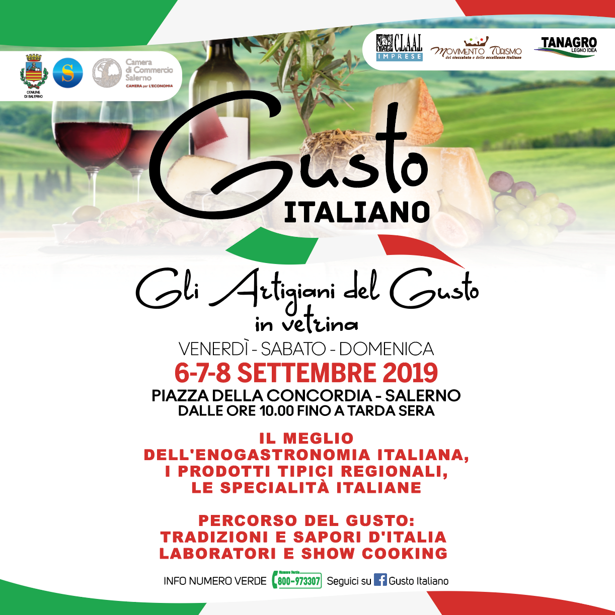 Salerno sarà la location di partenza per quest'edizione, che approderà poi a Milano nella prossima primavera. Produttori, artigiani del gusto e chef che proporranno interessanti show cooking saranno i protagonisti delle giornate di Gusto Italiano, dove largo spazio verrà concesso anche ai prodotti a marchio De.Co. (denominazione comunale) del nostro territorio e non solo, allo scopo di consentirne una valorizzazione maggiore ed una diffusione sempre più capillare.