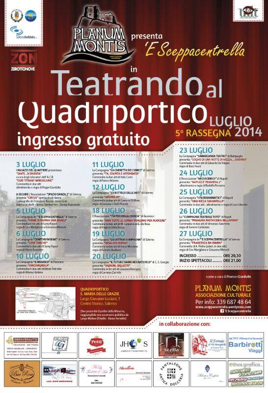 La rassegna teatrale “Teatrando al Quadriportico” nasce con l’obiettivo di promuovere e diffondere la cultura e l'arte del teatro. La compagnia teatrale de ‘E Sceppacentrella, che ne è ideatrice ed organizzatrice, dopo anni di esperienza, ha cercato con caparbietà di concretizzare un piccolo sogno.