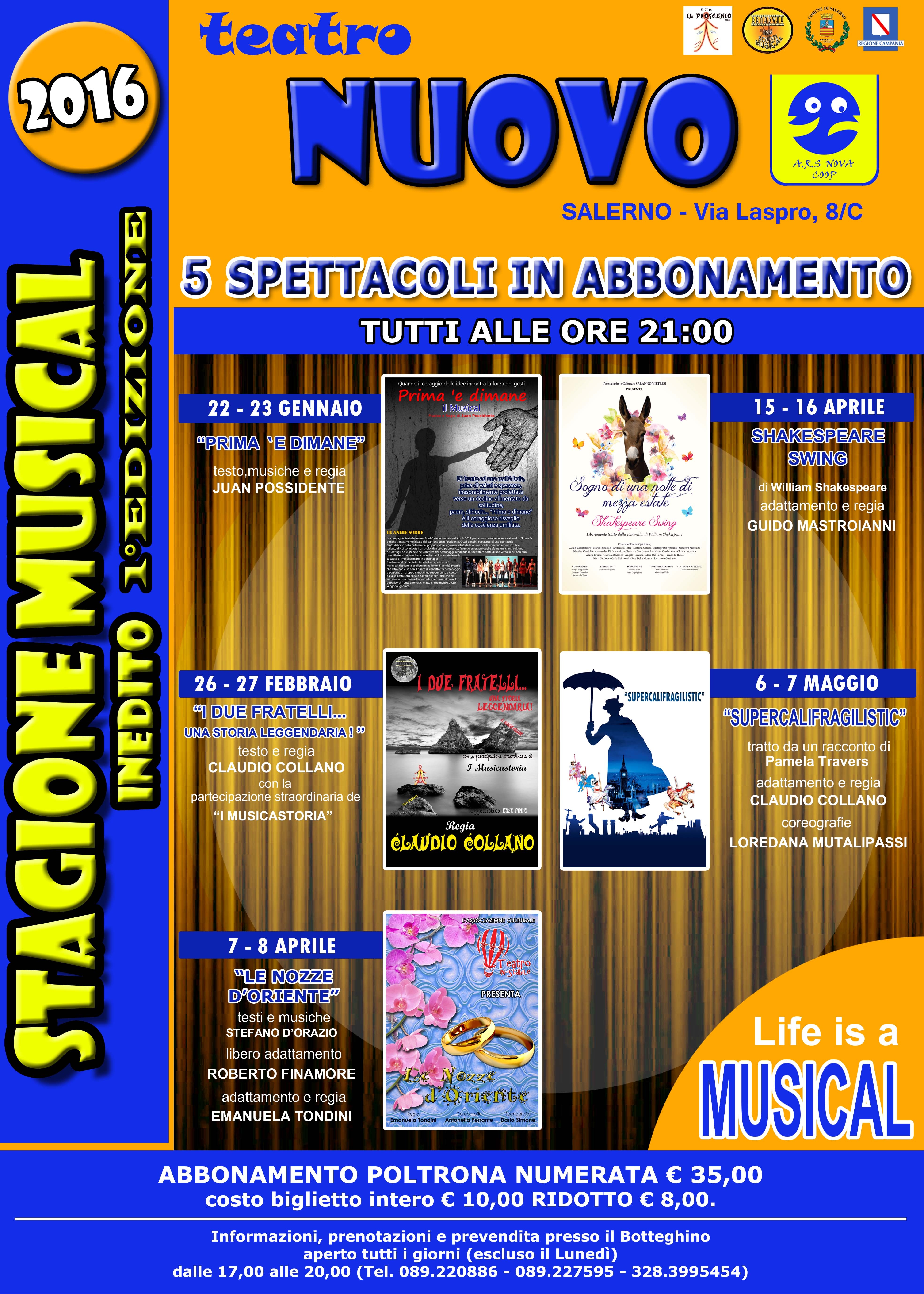 Si informa, inoltre, che venerdì 23 ottobre alle ore 20.00 presso il Teatro Nuovo si terrà un evento teatrale gratuito (con spettacolo teatrale), rivolto a docenti e dirigenti scolastici, nel corso del quale sarà illustrato la rassegna "La scuola va a teatro" (spettacoli mattutini) per le scuole.