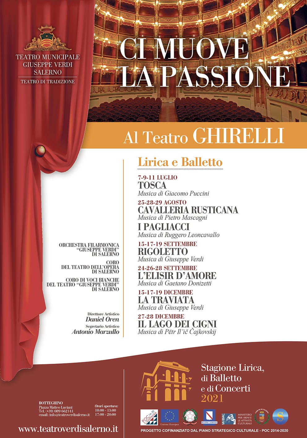 Dopo il felice esperimento della scorsa estate con La Vedova Allegra, il Teatro Municipale Giuseppe Verdi attende il suo pubblico nel magnifico anfiteatro sotto le stelle del Parco Urbano dell'Irno adiacente il Teatro Ghirelli. Una location incantevole per grandi serate di musica, belcanto, passioni.
