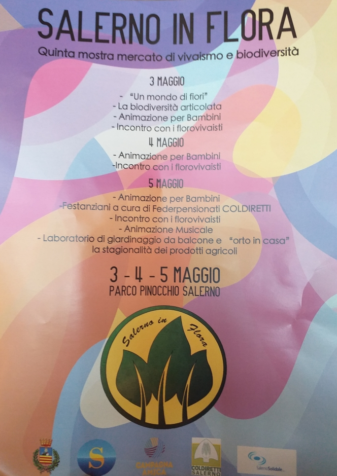 Torna dal 3 al 5 maggio, al parco Pinocchio, Salerno in Flora, quinta Mostra Mercato di vivaismo e biodiversità, promossa da Coldiretti, dal Comune di Salerno in collaborazione con Salerno Solidale. Nella tre giorni di manifestazione, i visitatori potranno acquistare prodotti biologici a chilometro zero presso gli stand mercato di Campagna Amica, partecipare a laboratori di orto da balcone, incontrare i vivaisti, scoprire la straordinaria biodiversità che caratterizza il territorio salernitano. Tra le novità di questa edizione, il Contadino Gio - “personal trainer” dell’orto - che farà conoscere il mondo rurale, le produzioni del territorio, la stagionalità e il rispetto dell’ambiente attraverso un breve corso che consente di coltivare erbe aromatiche e ortaggi in modo 100% biologico direttamente sul balcone di casa. Nella giornata di apertura del 3 maggio, i bambini della vicina scuola Medaglie d'Oro daranno libero spazio alla fantasia dipingendo su una enorme tela piante e fiori per creare una suggestiva opera d'arte en plein air. E ancora, laboratori e animazione per i più piccoli, spettacoli musicali e un evento dedicato ai pensionati con la santa messa e la pizza a Km0 al Parco Pinocchio.