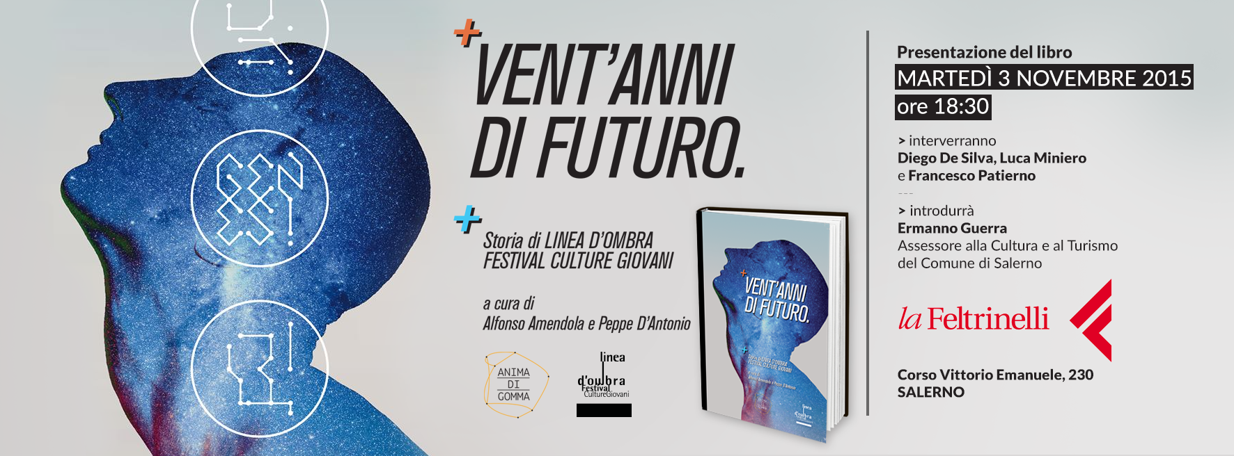 La linea “conradiana” è stata varcata, perché i primi vent'anni segnano il passaggio all'età adulta per Linea D'Ombra Festival Culture Giovani. I 'figli', non solo, si sono affrancati dai 'padri 'ma diventano essi stessi genitori di una creatura, che raccontano in “Vent'anni di futuro”: il libro, pubblicato da Anima di gomma editrice, in cui è racchiusa la storia della prima giovinezza del festival.